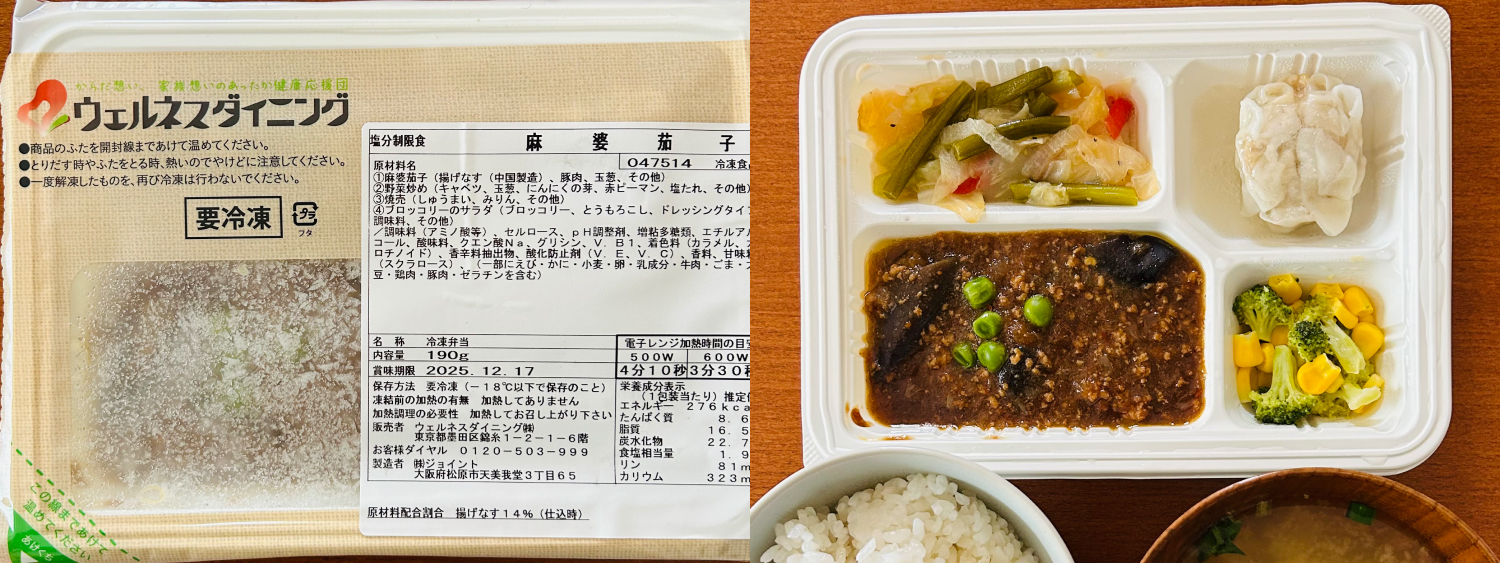 麻婆茄子で塩分制限の味って…と恐る恐る食べてみましたが、辛さは全くないものの、調味料や香辛料のおかげでかなり本格的な味わい!